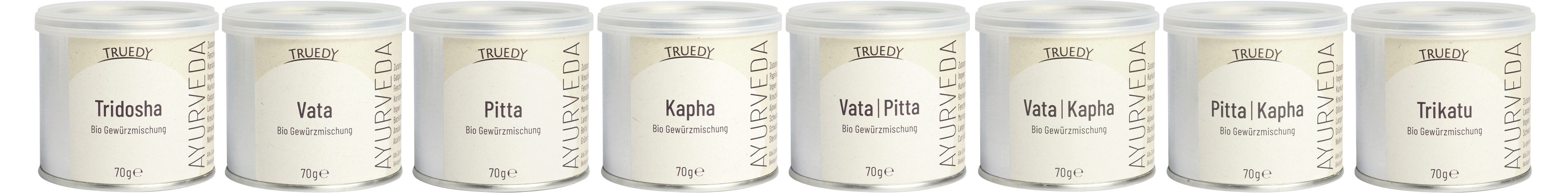 Authentische Ayurveda-Pflanzenweisheit in Truedy-Qualität. Mit Expertise möchten wir helfen, Ayurveda in das Leben der Menschen und in ihre Küche zu bringen. Auch ohne Vorkenntnisse ergänzen diese Gewürzmischungen alle bekannten und unbekannten Gerichte. Probiere es einfach aus: dezent einstreuen, salzen, umrühren, fertig. Das erweiterte typisch ayurvedische Kochen mit ganzen Gewürzen können weitere Schritte sein – müssen sie aber nicht. Du unterstützt mit unseren Gewürzen den natürlichen Ausgleichprozess, den Körper und Geist unentwegt vollbringen, um alles in dir im Gleichgewicht zu halten. Das bedeutet, in Harmonie zu sein mit den Wechselwirkungen von innerer und äußerer Welt.