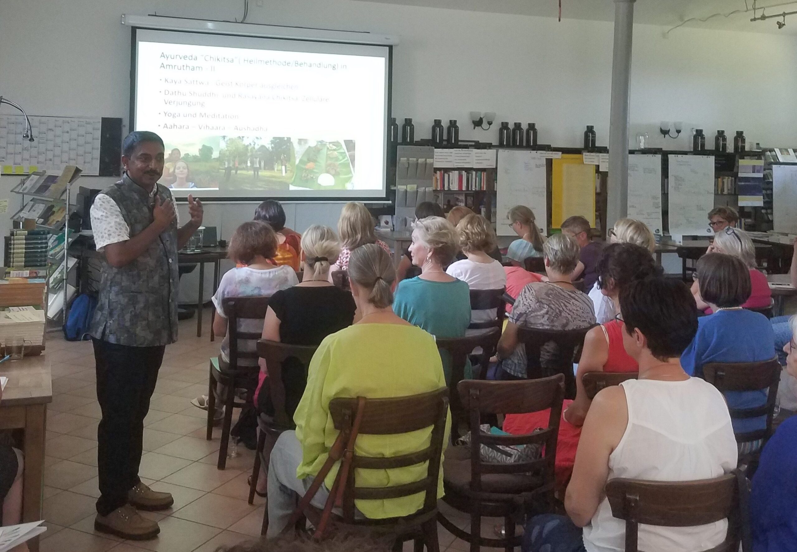 Danach freuten wir uns, dass auch Dr. Tulasi wieder die Reise aus Indien auf sich genommen hatte, um einen Vortrag bei uns zu halten. Allergien sollten dieses mal den thematischen Schwerpunkt bilden. Gegenüber der schulmedizinischen Sichtweise eröffnete Dr. Tulasi mit der Grundlage des Ayurveda eine viel natürlichere Sicht der Dinge.